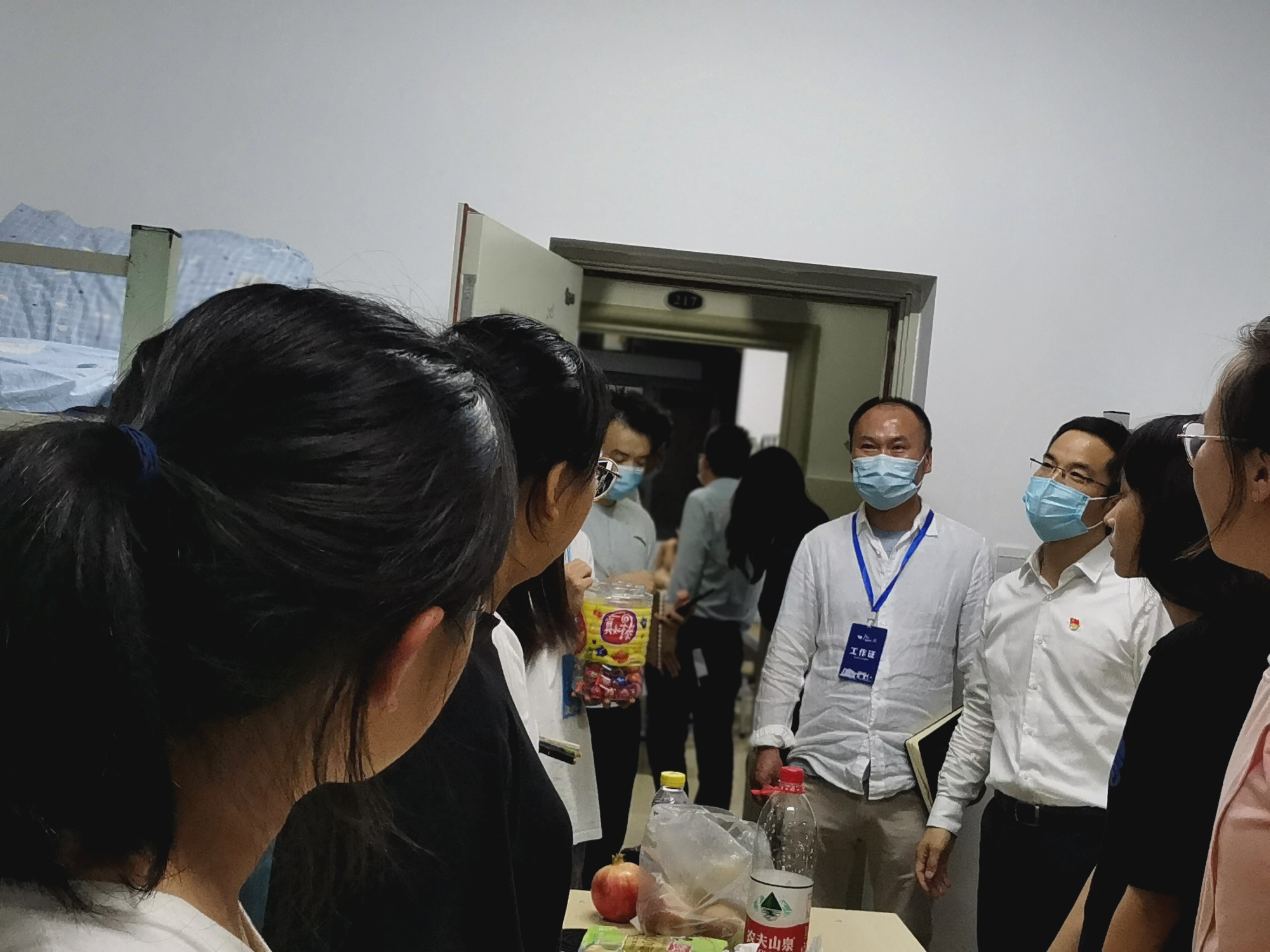 一天忙碌迎新后,到了晚上董事长和经理带领着新生辅导员以及老生去慰问新生,充分展现了公司领导对新生的重视。