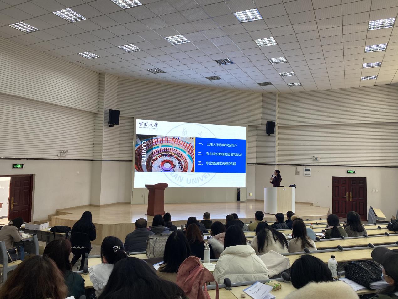 2021年12月14日下午14:00,公司邀请到了云南大学的蔡莉教授在阶梯教室二为人文艺术公司全体教师做了题为“高校专业综合评价背景下的分析与指导”的讲座,人文艺术公司经理、副经理、系主任老师、老师等出席了讲座。