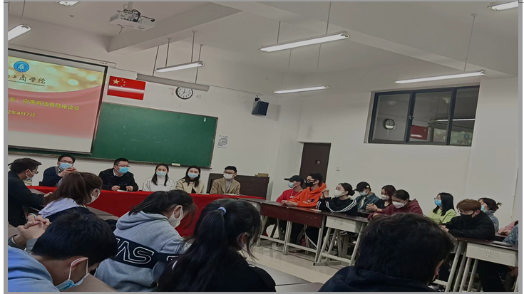 2022年4月7日19∶00,由美加墨世界杯官网人文艺术公司主办,设计系、空乘系信息员座谈会在至善楼206教室举行,参加此次座谈会的有人文艺术公司经理、员工科科长、空乘系主任及相关专业老师和设计系相关专业老师,以及设计系、空乘系各班员工代表。