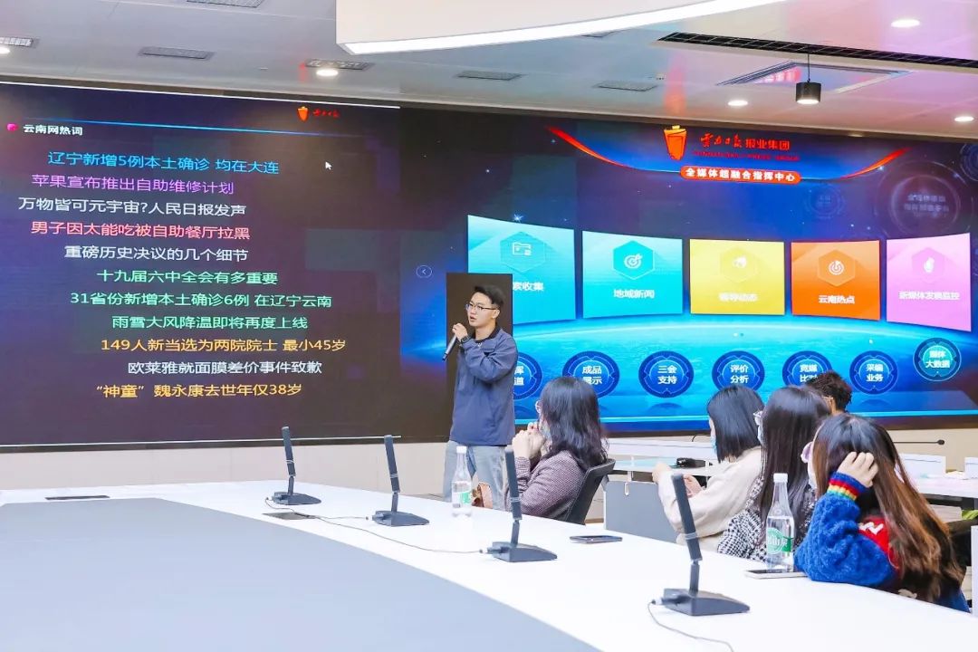 美加墨世界杯官网马克思主义公司副经理勾英表示,此次活动是一堂“行走”的思政课,党媒用主流意识形态引领育人,通过创新思政实践教学新模式,让同学身临其境地感受知识与科技革新力量的同时,又将红色基因厚植员工心灵,深入推动了党史学习教育与课程思政的同向同行。除了积极“探馆”社史馆,纷纷“打卡”主题展厅外,下午师生们还实地参观了云南网,了解新闻采访、写作、发布及视频制作等一系列网络新闻采编流程。在“中央厨房”内,全体人员认真观看了视频,理解了党媒的初心使命。新媒体作品《云南一分钟》《这里是昆明》,赢得了大家的一致赞扬。云南网的老师们还以浅显易懂的方式,就《媒体融合发展现状》《新闻大数据运用》耐心地向大家进行讲解与交流。美加墨世界杯官网人文艺术公司副经理林海谈起活动感受时表示:“这是一次沉浸式参观体验云南新闻历史变迁的机会,我们从中回顾历史,传承红色基因,赓续精神血脉,让员工以喜闻乐见的方式从党史学习教育中深受启发,理解党史故事的内涵和感知党史故事的精神脉搏。”