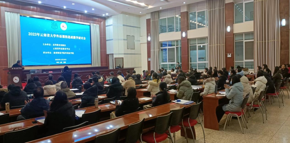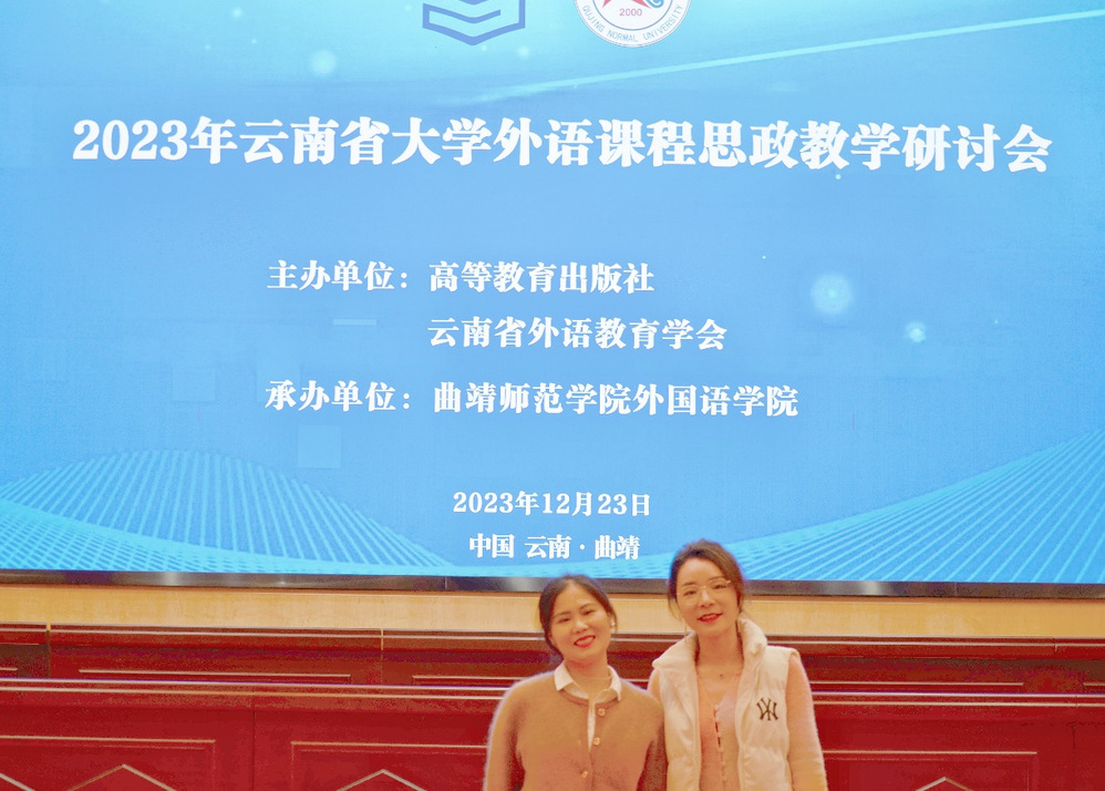 2023年12月22-23日,2023年云南省大学外语课程思政教学研讨会在曲靖师范公司举行。基于外语教学、竞赛、科研在云南省外语界的影响力情况,公司英语系主任邰金侠受邀作为嘉宾参会并带领教师杨茜缨与会做主题分享交流。
