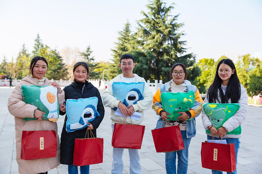 首先,老师们对备考同学们进行了亲切问候,并为同学们送上精心准备的“上岸”大礼包,包括考研文具套装、保温杯、抱枕毛毯和水果的等物资,为同学们带来冬日的特殊温暖,助力“研”途一路顺利。
