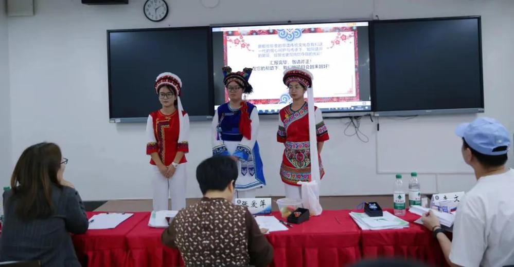 在现场路演环节,各参赛队伍通过项目计划书和PPT认真展示了多样化的创新项目,有的着民族特色服饰,有的展示了项目实体产品,向评委们展示了自身项目的创新思维和创新理念。