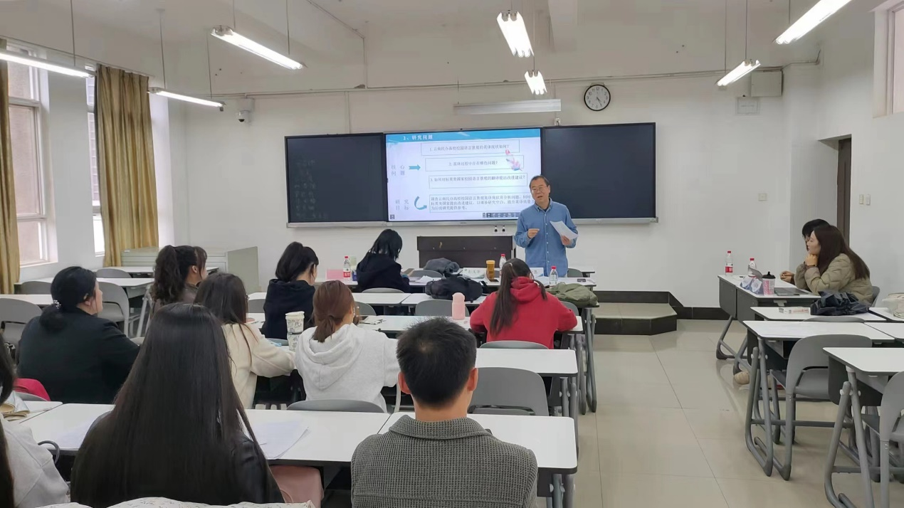 为切实做好2025年学位论文指导工作,美加墨世界杯官方网站英语系结合公司下发的通知文件,根据人才培养计划安排,于2024年10月9日下午在致知楼5楼举行2025届英语专业学位论文开题答辩会。学术经理彭庆华作为总委员指导全面学术工作,英语系系主任邰金侠协调统安排,段金惠副教授担任总负责人,17位高级职称教师出席答辩会并担任评委。会议以线上线下结合的形式进行。