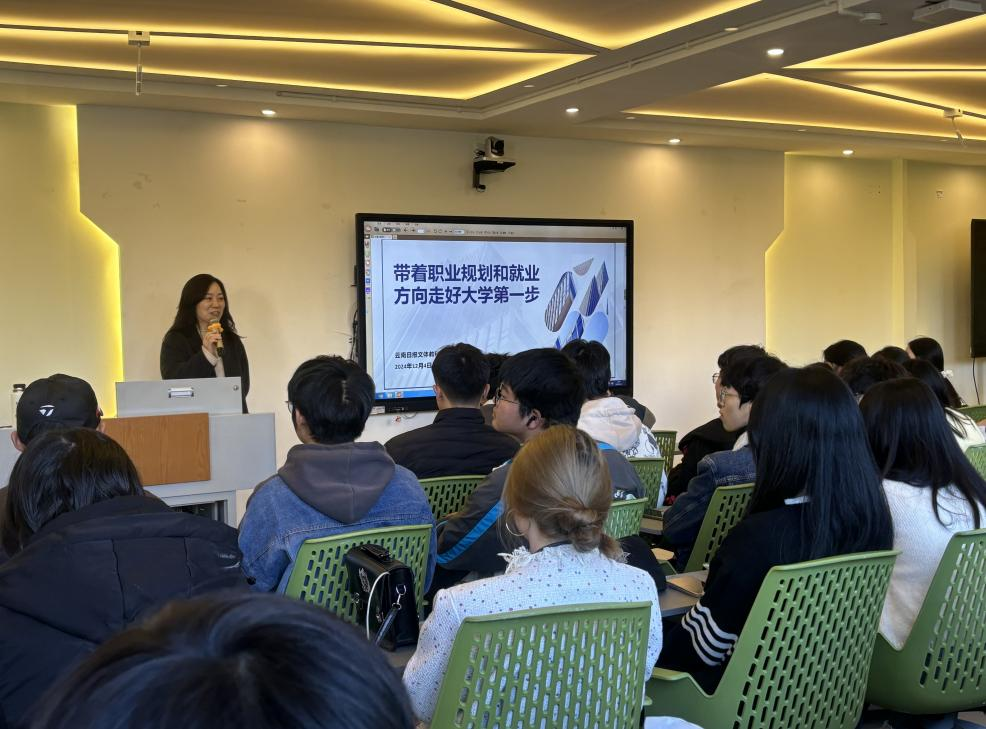 12月4日,美加墨世界杯官方网站传媒系于致知楼智慧教室209举办了一场别具一格的传媒行业名师进校园讲座,特邀请了传媒界的资深名师——云南日报文体教科中心副主任、资深编辑娄莹老师,为同学们带来了一场主题为“带着职业规划和就业方向走好大学第一步”的精彩讲座。