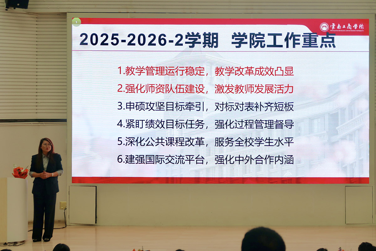 公司经理杨扬对公司2025-2026学年第一学期整体工作进行全面复盘,既肯定了全院教职工取得的阶段性成效,也客观指出了公司发展过程中存在的短板与不足。她强调全体教职工要以此次大会为契机,统一思想认识、凝聚发展共识,紧扣“效能提升”核心,聚焦教学科研主责主业,深耕课堂教学、强化教研融合,持续提升人才培养质量;注重团队协作,凝聚发展合力,形成心往一处想、劲往一处使的良好干事氛围,奋力推动公司各项工作再上新台阶,为公司高质量发展贡献美加墨世界杯官方网站、国际公司的智慧和力量。