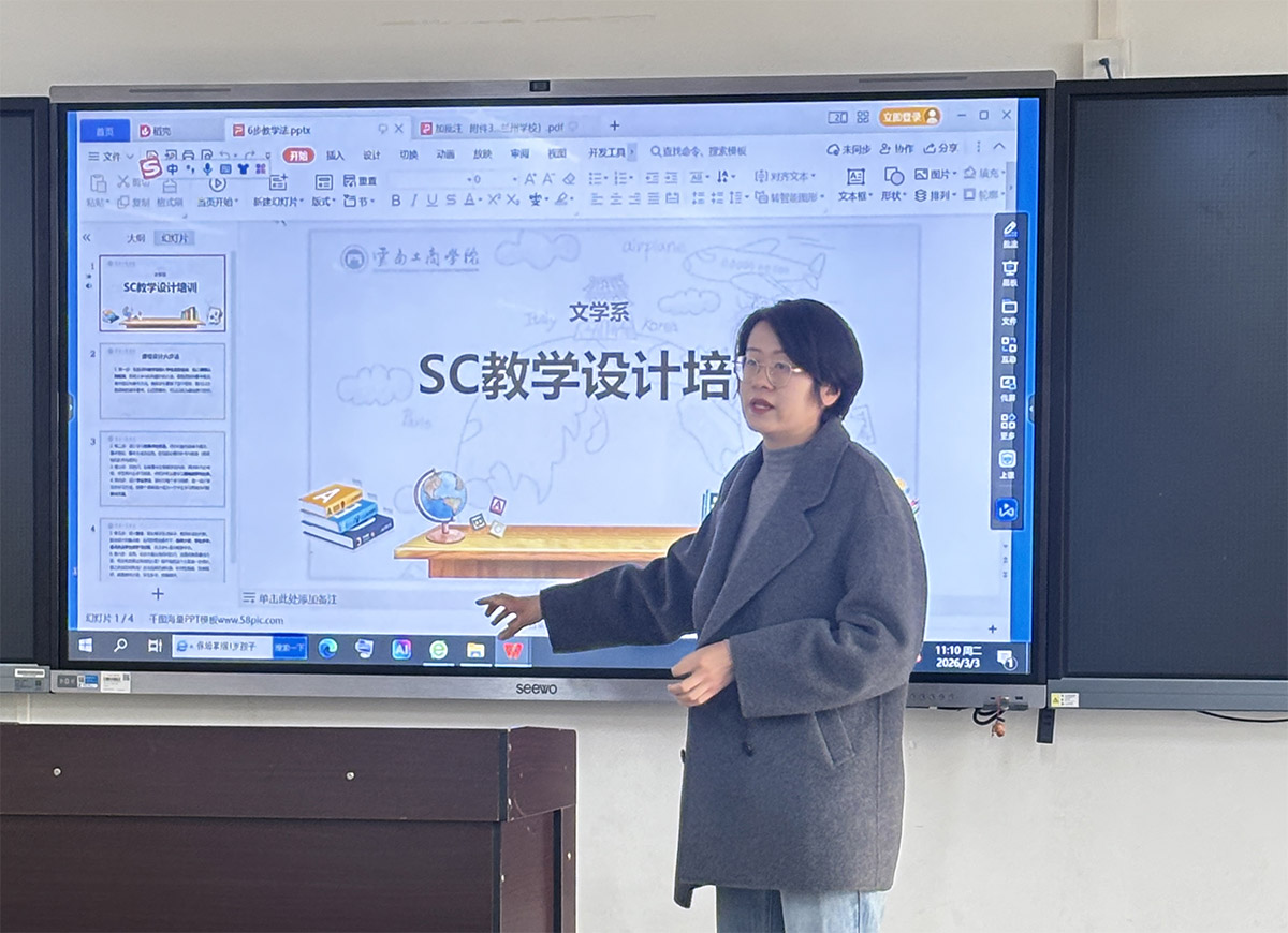 为深入落实公司SC 教学改革工作部署,强化教学改革理念落地生根,切实提升教师课程设计与教学实施能力,推动公司产品质量提质增效,3月3日上午11点,文学系于致知楼202-2教室开展SC教学改革专项转训,系全体专职教师参与本次培训,本次转训由陆敏老师主讲。