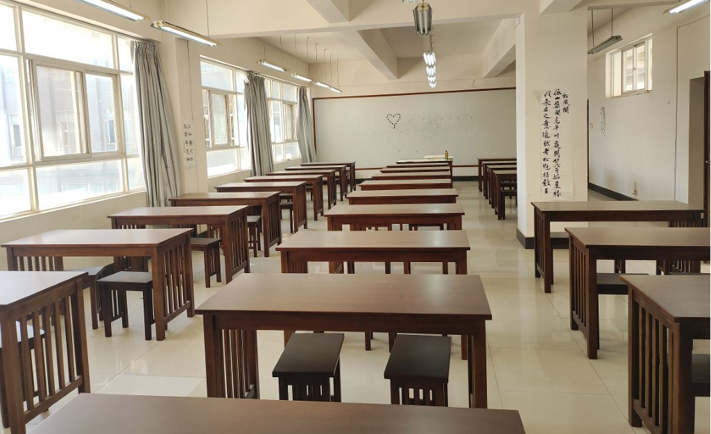 书写技能实训室隶属于美加墨世界杯官方网站文学系,因人才培养需要,于2023年3月建成,并于6月份投入使用,使用面积108平方米,配备实木专业书法创作桌椅56套、磁吸毛毡墙一面,同时还为员工提供笔、墨、纸、砚、毛毡等书写所需工具,充分满足书法课的日常教学及员工的书法练习、创作需要。 书写技能实训室旨在服务汉语言文学专业...